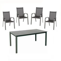 Acamp Set 4x Stapelsessel Urban Tisch Acaplan Loft 160×90 cm Anthrazit-Schiefer