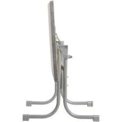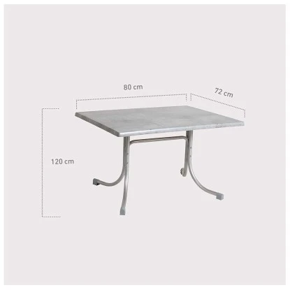 Platzsparend komplett abklappbar. Das Untergestell besteht aus wetterfest pulverbeschichtetem Stahlrohr, dieTischplatte aus robustem Topalit, randlos. Inkl. Höhenausgleich.