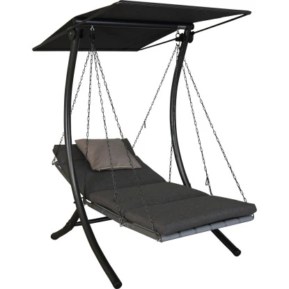 Das robuste Gestell der Hollywoodschaukel besteht aus verzinktem und pulverbeschichtetem Stahl. Das Sonnendach ist aus wetterfestem Textil Gewebe gefertigt und ebenfalls verstellbar. Durch Vor- oder Zurückschieben oder Neigen des Daches ist stets optimaler Sonnenschutz gegeben.