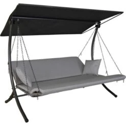 Das robuste Gestell der Hollywoodschaukel besteht aus verzinktem und pulverbeschichtetem Stahl. Das Sonnendach ist aus wetterfestem Textil Gewebe gefertigt und ebenfalls verstellbar. Durch Vor- oder Zurückschieben oder Neigen des Daches ist stets optimaler Sonnenschutz gegeben.