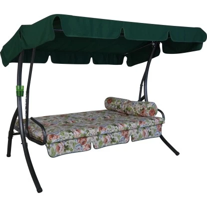 Die Angerer Hollywoodschaukel Trend lässt sich mit wenigen Handgriffen vom 3-Sitzer zur bequemen Liegefläche verwandeln. Das Gestell besteht aus verzinktem Stahl, der für optimalen Korrosionsschutz mit einer kratzunempfindlichen Pulverbeschichtung veredelt wurde. Viele Teile, wie beispielsweise der witterungsbeständige Sitz aus Kunststoff, werden bereits werksseitig vormontiert geliefert, sodass der Aufbau der Hollywoodschaukel kinderleicht ist. Das waschbare Stoff-Sonnendach ist im Neigungswinkel verstellbar, sodass stets optimaler Sonnenschutz erzielt werden kann. Die Bezüge von Sitz- und Lehnenkissen lassen sich dank der praktischen Reißverschlüsse einfach abziehen und bei 30° C in der Maschine waschen. Gefüllt sind die Auflagen mit Schaumstoff, welcher für optimalen Sitzkomfort mit einem weichen Polyestervlies ummantelt wird. Zwei kleine Polster, sowie eine Unterlage sind ebenfalls im Lieferumfang enthalten.