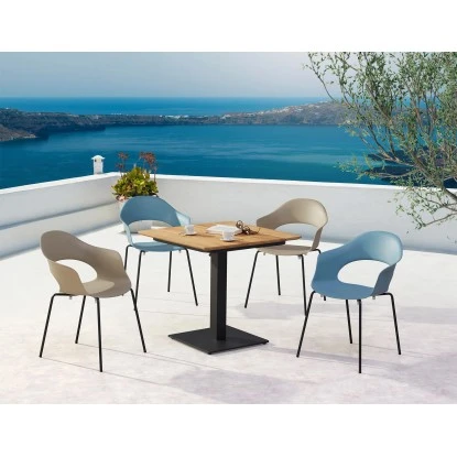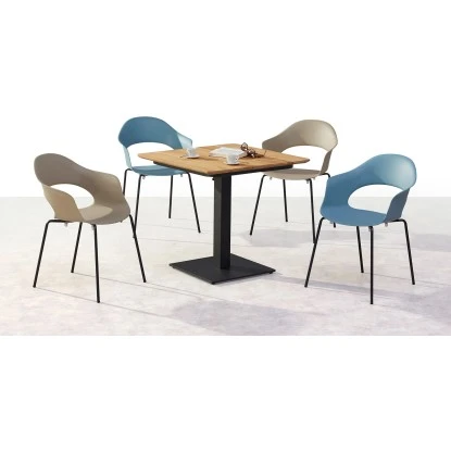 Der Best Tisch Cervia bietet viel Beinfreiheit und ist dadurch besonders bequem. Er zeichnet sich durch eine markante Mittelsäule sowie eine besonders stabile und standfeste Konstruktion mit Metallguß-Bodenplatte aus. Die Bodenplatte ist mit Niveau-Ausgleichsschrauben ausgestattet und steht daher auch bei Bodenunebenheiten sicher und fest. Die platzsparend abklappbare Tischplatte ist in Teakholz gehalten. Die Klappfunktion bietet einen bedienungsfreundlichen und klemmsicheren Mechanismus.