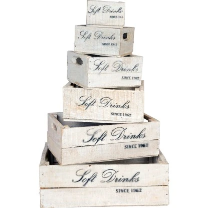 Deko Holzkisten-Set Softdrinks 6-tlg. Weiß