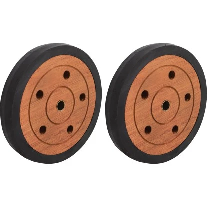 Die Ersatz-Räder stellen ein Zubehörelement für die Sonnenliege Chelsea dar. Der 2er-Satz dient zum Austausch defekter oder abgenutzter Räder und sorgt für eine einfache Handhabung des Gartenmöbels. Durch Anheben des langen Schenkels lässt sich die Liege ohne viel Kraftaufwand bewegen. Gefertigt sind die Laufrollen aus holzfarbenem Kunststoff in stabiler Ausführung mit einer schwarzen Gummiauflage. Dadurch werden empfindliche Bodenbeläge auf der Terrasse vor Kratzern geschützt. Die Räder besitzen einen Ø von 17,5 cm und eine Stärke von 2,8 cm.