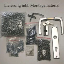 Schloss, Drückergarnitur, Montagematerial und Montageplan