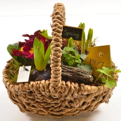 Dieser mit einer Auswahl bunter Frühblüher bepflanzte Henkelkorb verbreitet auf dem Balkon und der Terrasse oder vor der Tür ein frühlingshaftes Flair.