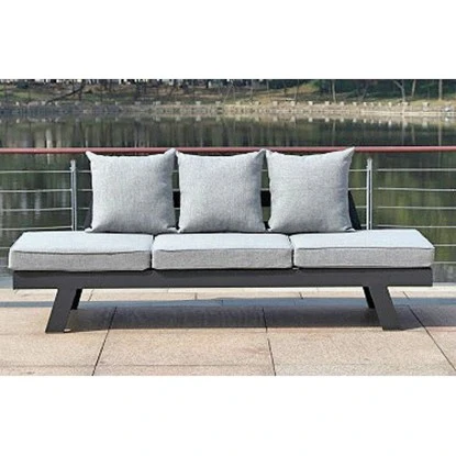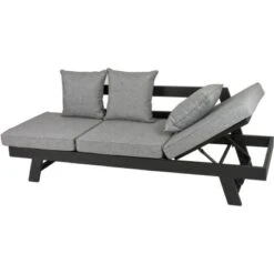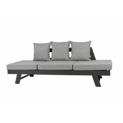 Das Garden Pleasure Funktionssofa Donna besteht aus einem pulverbeschichtetem, anthrazitfarbigem Aluminiumgestell und den Rücken- bzw. Sitzkissen. Die äußeren Sitzflächen sind mit einer Verstellvorrichtung versehen, so dass sie stufenweise aufgestellt werden können. So lässt sich ganz einfach eine bequeme Sitz- oder Liegeposition finden.