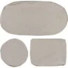 Das Gestell ist aus Aluminium gefertigt und ist somit gegenüber Gestellen aus anderen Materialien rostbeständig. Die Holzoptik-Komponenten bestehen aus WPC (=Holz-Kunststoff Gemisch) und sind dadurch wetterbeständig: die Streben verbiegen und verziehen sich nicht, eine Nachbehandlung oder ein Streichen ist nicht erforderlich. Die Sitzauflagen und Rückenkissen runden das elegante Flair ab. Die Bezüge können mithilfe von verdeckten Reißverschlüssen bei Bedarf abgenommen und gewaschen werden. Die Deko-Kissen bieten Gemütlichkeit und die Sitzauflagen haben mit ca. 10 cm einen hohen Sitzkomfort.