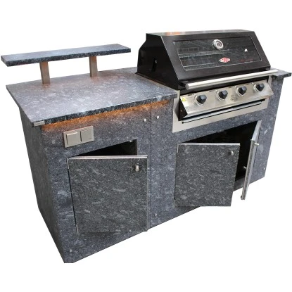 Mit einer Häusler-Outdoor-Küche Zeit mit den Liebsten gemeinsam genießen. Hochwertiger Naturstein aus Europa in fertigen Modulen bildet das Fundament Ihrer Outoor-Küche. Mit Türen aus Naturstein nicht nur funktionell sondern auch stylisch. Eine polierte Natursteinarbeitsplatte trägt den hochwertigen Einbaugas-Grill Serie 1600 des Markenherstellers Beef-Eater.