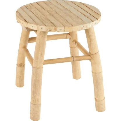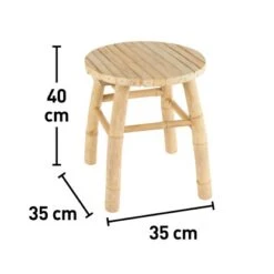 Gefertigt ist der Hocker aus echtem Bambus. Das umweltfreundliche Material ist sehr leicht und gleichzeitig stabil. Es trocknet schnell und ist unempfindlich gegenüber UV-Licht. Zudem gehört es zu den schnell nachwachsenden Rohstoffen. Die Sitzfläche besteht ebenfalls aus Bambus. Sie ist aus gleichmäßigen Leisten gezimmert, wodurch die Maserung des Naturstoffes gut zur Geltung kommt. Bei einer Höhe von 40 cm beträgt die Breite 35 cm. Seine Tiefe liegt bei 35 cm.