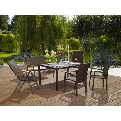 Die attraktive Hollywoodschaukel Davenport II aus Textilen lädt zum Entspannen im Garten, auf dem Balkon oder der Terrasse ein. Sie bietet ein gemütliches Plätzchen zum Schaukeln, Sonnenbaden oder Sitzen. Lehnen Sie sich bequem zurück und lassen Sie Ihre Seele baumeln. Das stabile Stahl-Gestell sowie das Polyrattan-Geflecht sind in der Farbe Braun gehalten. Sie sind pflegeleicht und witterungsbeständig.