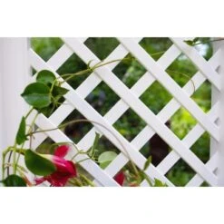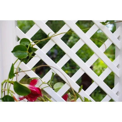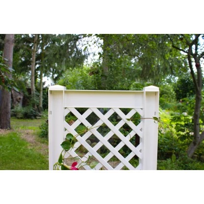 Der kleine Pflanzkasten mit Rankgitter setzt mit farbenfrohen Kletterpflanzen bepflanzt Ihre Terrasse stilvoll in Szene und schafft einen schönen Sicht- und Windschutz.