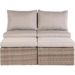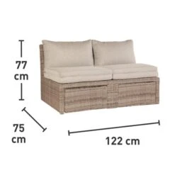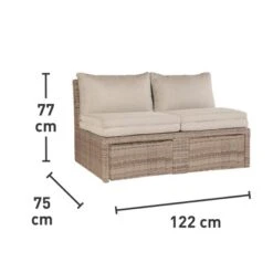 Die Lounge-Set Zalma in Sand ist ein echtes Platzwunder und passt nicht nur in Ihren Garten oder auf die Terrasse, sondern auch auf kleine Balkone. Die moderne Flechtoptik wird zum Hingucker und wertet Ihren Außenbereich optisch auf. Mit den kompakten Maßen passt das Lounge-Sofa sogar auf schmale Balkone.