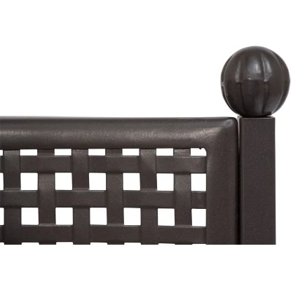 Der MBM Sessel Romeo lädt zum Verweilen im Garten oder auf der Terrasse ein. Aus hochwertigem Schmiedeeisen gefertigt, ist er äußerst stabil und langlebig. Dank 2-fach verzinkter und pulverbeschichteter Oberfläche in Marone ist er zudem witterungsbeständig und kann daher sowohl im Innen- als auch im Außenbereich eingesetzt werden. Die Rückenlehne, Sitzfläche sowie die geschwungenen Armlehnen sind mit Zierelementen versehen, die dem Sessel ein edles Design verleihen.