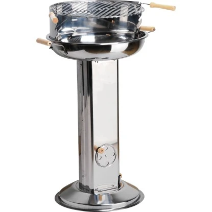 Der aus Edelstahl gefertigte Grill überzeugt außerdem durch seine solide Verarbeitung und einen festen Stand. Der höhenverstellbare Grillrost erlaubt eine optimale Steuerung der Grilltemperatur. Je nachdem, wie weit die Glut vom Grillrost entfernt ist, verändert sich die Temperatur am Grillgut. Weitere Vorzüge sind ein Windschutz sowie ein herausnehmbarer Aschebehälter.