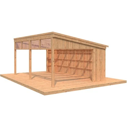 Palmako Holz-Pavillon Nova 21,5 m² Kit aus braun tauchgrundiertem nordischem Fichtenholz. Nach drei Seiten und oben offener Pavillon – das perfekte Sommerabend-Wohnzimmer in Ihrem Garten. Holzrahmen-Konstruktion mit der Möglichkeit eine 70 mm dicke Dämmschicht anzubringen. Der Pavillon ist bereits mit einer Tauchgrundierung versehen und kann nach dem Aufbau mit allen handelsüblichen Farben weiterbehandelt werden. Schiebetürelemente, Holzfußboden, Terrassenboden und Dacheindeckung nicht im Lieferumfang enthalten