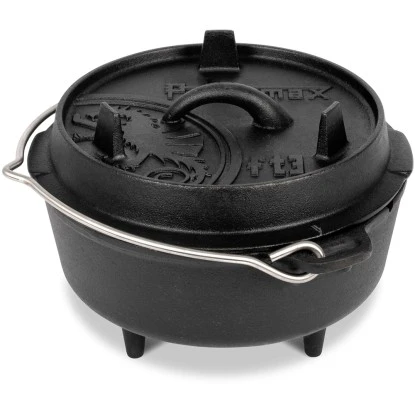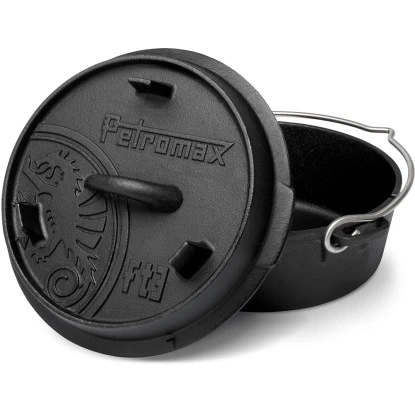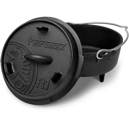 Der originale Petromax Feuertopf, oft auch als Dutch Oven bezeichnet, eignet sich ideal für das Kochen und Backen im Freien oder im heimischen Backofen. Durch die hervorragenden Eigenschaften des Gusseisens und die spezielle Oberflächenstruktur wird die Wärme effizient gespeichert und weitergeleitet. Die vorbehandelte Oberfläche (seasoned finish) macht ein erstmaliges Einbrennen unnötig und der robuste Feuertopf kann sofort verwendet werden. Der erhöhte Rand des Deckels ermöglicht es, Glut oder Holzkohle auch auf dem Feuertopf zu platzieren. So wird der Feuertopf von allen Seiten beheizt und eignet sich beispielsweise auch zum Brot backen. Die Thermometerdurchführung ermöglicht es, die Temperatur zu überprüfen ohne den Deckel anheben zu müssen. Der Deckel kann umgedreht auch als Pfanne verwendet werden.