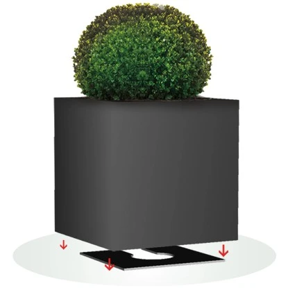 Die Pflanzwerk® Pflanzkübel Untersetzer sind aus Kunststoff hergestellt. Das Gießwasser kann durch den patentierten Ablaufkanal in eine gewünschte Richtung abgeleitet werden. Frostschäden am Pflanzkübel und Wurzelfäule an der Pflanze werden so verhindert. Zudem schwebt der Pflanzkübel über dem Boden, wodurch das Eindringen von Feuchtigkeit erschwert wird.