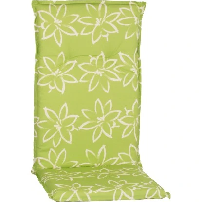 Saumauflage für Hochlehner Gartenstühle mit den Maßen 118 cm x 50 cm und einer Polsterstärke von 6 cm. Die Auflage hat eine Schaumstoff- und Vliesfüllung. Der Stoff besteht aus 50% Baumwolle und 50% Polyester. Er ist schadstoffrei.