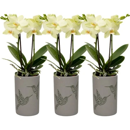 Schmetterlingsorchidee 2-Trieber Gelb Im Keramik-Gefäß Topf-Ø Ca. 9 Cm