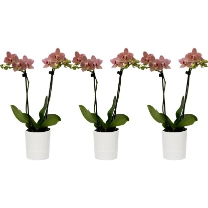 Die Schmetterlingsorchidee (Phalaenopsis) ist die bekannteste und beliebteste aller Orchideenarten. Ihren Namen verdankt sie der besonderen Blütenform, die an tropische Schmetterlinge erinnert. Schmetterlingsorchideen sind besonders blühfreudig und robust und eignen sich auch ideal für ungeübte Orchideenliebhaber. Sie kommen mit normalen Wohnzimmertemperaturen sehr gut zurecht und bevorzugen dabei einen hellen bis halbschattigen Fensterplatz, ohne direkte Mittagssonne. An heißen Tagen und bei trockener Heizungsluft sollten die Luftwurzeln morgens leicht mit etwas Wasser besprüht werden. Im Sommer wöchentlich, im Winter alle zwei Wochen gießen oder tauchen. Je wärmer und heller die Orchideen stehen, desto mehr Wasser benötigen sie. Staunässe vermeiden und regelmäßig alle vier Wochen mit handelsüblichem Orchideendünger in schwacher Konzentration düngen.