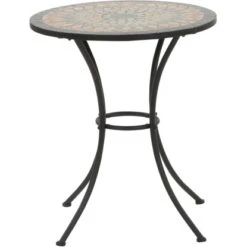 Holen sie sich den Landhaus-Charme in den Garten. Der Siena Garden Bistrotisch Prato erschafft mit seiner Mosaik-Optik ein natürliches und wunderschönes Milieu im klassischen Landhaus-Stil. Das Gestell ist aus besonders robustem Stahl, welcher zudem pulverbeschichtet und dadurch pflegeleicht ist. Wie für die Serie üblich, bietet er verschiedene Sitz- und Abstellmöglichkeiten und überzeugt daher mit optimaler Funktionalität. Der Prato Bistrotisch mit seiner Tischplattenoberfläche in Mosaik-Optik wird ganz bestimmt zur Zierde Ihrer grünen Gartenwelt.