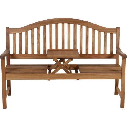 Das Gestell und die Flächen sind aus Akazienholz FSC® 100% geölt in der Farbe natur. Die Armlehnen sind aus Akazienholz FSC® 100%. Die Bank bietet Platz für 3 Personen und hat die Maße von ca. L: 66 cm x B: 150 cm x H: 104 cm. Das Material ist witterungsbeständig und pflegeleicht.