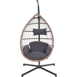 Das Gestell ist aus Stahl und pulverbeschichtet in der Farbe schwarz. Die Flächen sind aus Gardino®-Geflecht rund. /flach in der Farbe royal oak. Inklusive Sitz- und Rückenkissen aus Polyester, 230g/m². Der Hängekorb hat die Maße ca. L: 138 cm x B: 78 cm x H: 87,5 cm und Gestell für den Hängekorb hat die Maße ca. L: 135 cm x B: 135 cm x H: 196 cm. Das Material ist pflegeleicht und die Kissen sind handwaschbar.