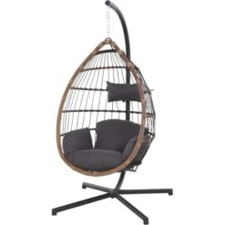 Das Gestell ist aus Stahl und pulverbeschichtet in der Farbe schwarz. Die Flächen sind aus Gardino®-Geflecht rund. /flach in der Farbe royal oak. Inklusive Sitz- und Rückenkissen aus Polyester, 230g/m². Der Hängekorb hat die Maße ca. L: 138 cm x B: 78 cm x H: 87,5 cm und Gestell für den Hängekorb hat die Maße ca. L: 135 cm x B: 135 cm x H: 196 cm. Das Material ist pflegeleicht und die Kissen sind handwaschbar.
