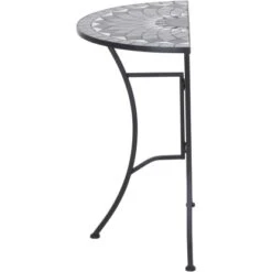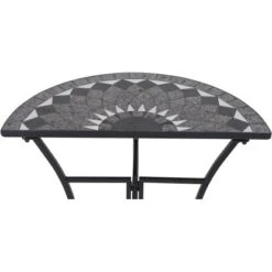 Der dekorative Siena Garden Tisch Como hat ein stabiles, pulverbeschichtetes Stahlgestell in Schwarz, das für einen sicheren Stand und hohe Stabilität sorgt. Die individuellen, in Grau gehaltenen Muster werden von Hand gesetzt und verleihen diesem Möbelstück seinen ganz eigenen Charme. Dreiecke und Quadrate aus Keramik sind zu geometrischen Mustern angeordnet, die einen schönen Kontrast zu den geschwungenen Stahlstreben und Mustern aus Metall bilden. Die Como-Serie besteht aus vielen verschiedenen Dekorationsmöbeln sowie Regalen und Blumenständern, die beliebig miteinander kombiniert werden können.