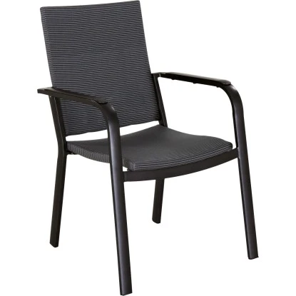 Der Stapelstuhl Pacora II bietet Ihnen eine schlichte und schicke Sitzmöglichkeit für Ihren Garten, Ihre Terrasse oder Ihren Balkon. Für eine platzsparende Verstauung ist er stapelbar. Das stabile, aber leichte Aluminiumgestell verleiht dem Stuhl eine praktische Leichtigkeit für ein einfaches Verschieben und Transportieren. Dank der schwarzen, atmungsaktiven Textilen-Bespannung ist das Sitzen ein bequemes Vergnügen. Der Stapelstuhl lässt sich ideal mit anderen Modellen dieser Serie kombinieren und hat ein Gesamtmaß von 90 cm x 59 cm x 65 cm (H x B x T).