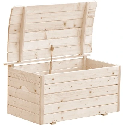 Timbela Spielzeugkiste Holz M034 mit Deckel ist die perfekte Lösung für die Aufbewahrung von Spielzeug und Gartenzubehör. Mit der Kiste können Sie nicht nur Ihre Kinder, sondern auch die Natur im Garten, begeistern. Die Spielzeugtruhe wird aus unbehandeltem Kiefern-/Fichtenholz hergestellt und hat eine Dicke von 15 mm. Da das unbehandelte Holz einfach zu streichen ist, erhalten Ihre Kinder die Möglichkeit, ihre eigene Spielzeugkiste in einzigartigen Farben zu gestalten. Mit dem abnehmbaren Deckel erhalten Sie zusätzliche Sicherheit und können die Kiste als Sitzgelegenheit nutzen. Entdecken Sie jetzt die Timbela Spielzeugkiste Holz M034 mit Deckel und machen Sie Ihren Garten zu einem einzigartigen Ort für Ihre Kinder.