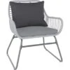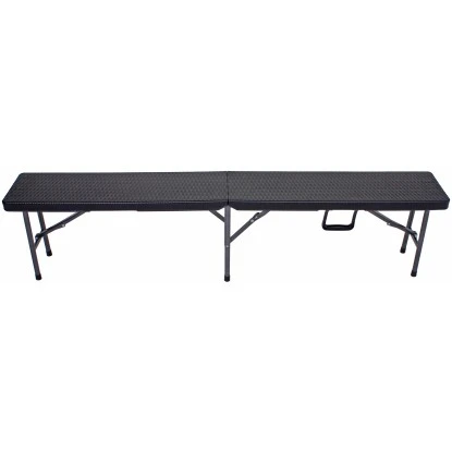 Das Tisch-Set Ventana besteht aus zwei Bänken und einem Tisch. Alle Set-Teile sind aus schwarzem Kunststoff in Rattanoptik und einem grauen Stahlgestell gefertigt. Sowohl Bänke als auch der Tisch lassen sich mühelos zusammenklappen, so dass das Set problemlos transportiert werden kann.