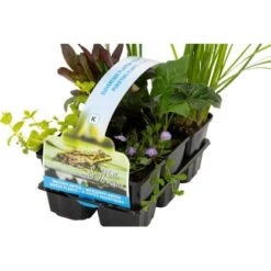 Die Wasserpflanzen sind eine schöne Bereicherung für jeden Gartenteich. Es handelt sich um die Sorten Acorus, Caltha, Eriophorum, Iris, Mentha und Ranunculus, mit denen der Gartenteich kreativ gestaltet werden kann.