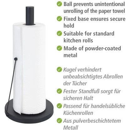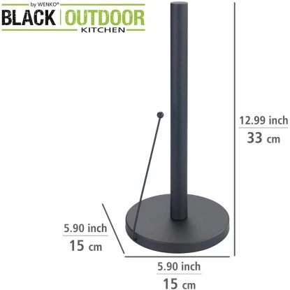 Wenn sich die Frage „Wohin mit der Küchenrolle?“ stellt, kommt der praktische Wenko Küchenrollenhalter Clayton pulverbeschichtetes Metall in Schwarz ins Spiel: Der Papierrollenhalter aus schwarzem, pulverbeschichtetem Metall bewahrt Küchenrollen stets griffbereit auf. Das robuste Material ist widerstandsfähig und eignet sich ideal für den Outdoor-Bereich Ihrer Außenküche. Geeignet für alle gängigen Küchenpapierrollen haben Sie das Küchenpapier bei Bedarf immer da, wo sie es brauchen. Der feste Standfuß dieser Konstruktion sorgt stets für einen sicheren Stand und eine einfache Handhabung. Die Kugel verhindert ein unbeabsichtigtes Abrollen der Tücher.
