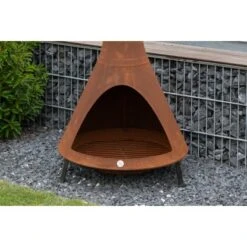 Die Westmann Feuerstelle inkl. Rauchablass garantiert gemütliche Abende in Ihrem Garten. Der Kaminofen aus wetterfestem Cortenstahl ist dank seiner leicht gerosteten Oberfläche nicht nur bestens vor Witterungseinflüssen und Korrosion geschützt, sondern auch gleichzeitig ein wahrer Hingucker. Die stabilen Füße sorgen für einen sicheren Stand und der Schornstein ermöglicht einen problemlosen Abzug des Rauches.