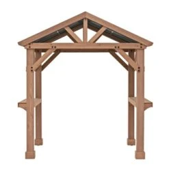 Der Westmann Pavillon ist ein Holzpavillon mit Bronze-Aluminium-Dach. Der Gartenpavillon ist hergestellt aus 100 % FSC-zertifiziertem Cedar-Holz. Dadurch punktet er nicht nur in Sachen Nachhaltigkeit, sondern fügt sich dank der naturbelassenen Beize in Mokkabraun auch ganz natürlich und dezent in sein Umfeld ein. Die stabilen Pfosten sorgen für Standfestigkeit. Durch die großen Thekenflächen auf beiden Seiten eignet sich der Pavillon besonders für gemütliche Grillabende mit Freunden und Familie.