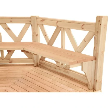 Die Wolff Finnhaus Satz Bänke sind umlaufende Sitzbänke für den Pavillon Kreta 6.